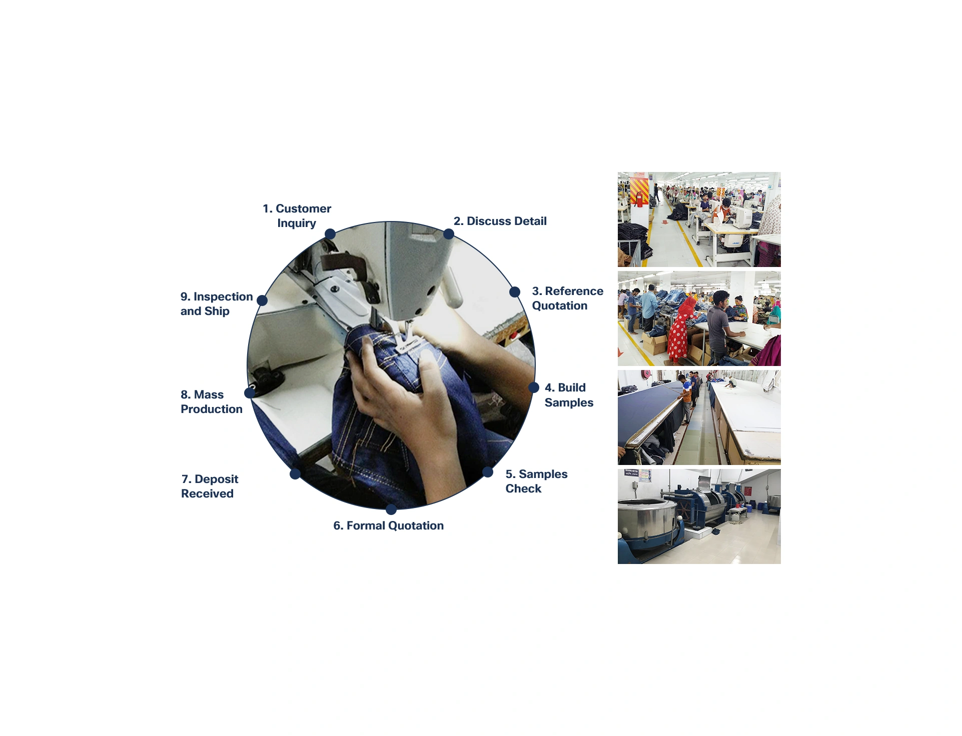 可依據客戶需求從布料到成品出貨, 提供一站式服務及一條龍的方案.